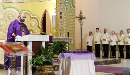 Santa Missa presidida pelo Pe. João Marcos Polak. “REUNIDOS EM TORNO DA MESA DA PALAVRA E DA EUCARISTIA, RENOVAMOS NOSSA CONFIANÇA NO SENHOR, QUE NOS CHAMA A ESCUTAR SUA VOZ E A VIVER COM FIDELIDADE O SEU AMOR.”