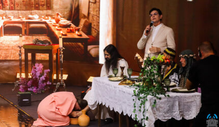 A Via-Sacra, realizada durante a Festa de Jesus das Santas Chagas, sob a responsabilidade da Dramaturgia, é um momento de profunda espiritualidade e reflexão. OS FIÉIS ACOMPANHAM AS ESTAÇÕES, RECORDANDO OS PASSOS DE CRISTO EM SEU CAMINHO DE DOR E ENTREGA PELA HUMANIDADE. Cada estação é vivida como oportunidade de oração, penitência e renovação da fé, unindo a comunidade em torno do mistério da cruz e da esperança da ressurreição.
